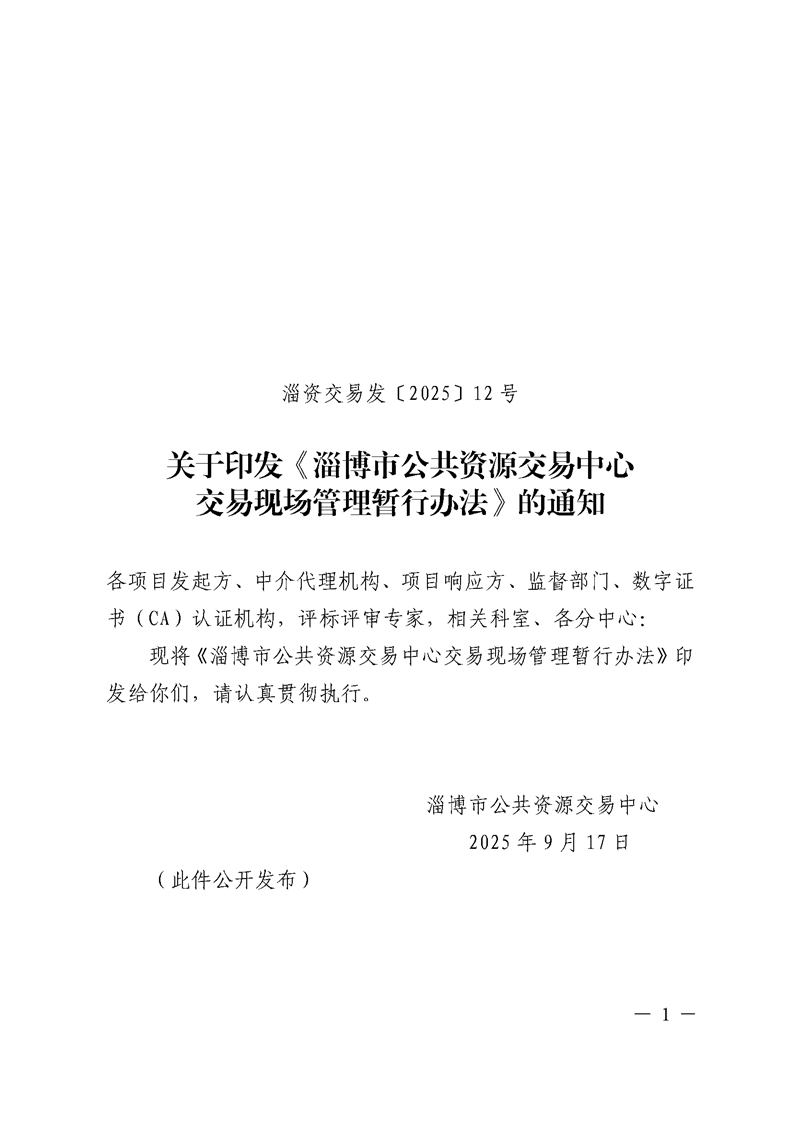 关于印发《淄博市公共资源交易中心交易现场管理暂行办法》的通知.pdf