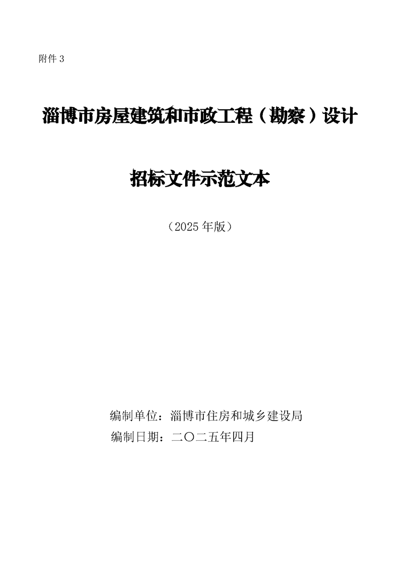 淄博市房屋建筑和市政工程(勘察)设计招标文件示范文本(2025年版)