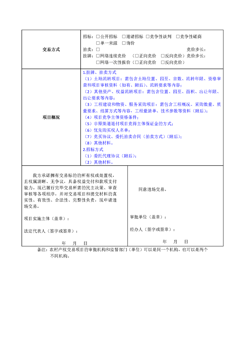 农村产权进场交易登记表