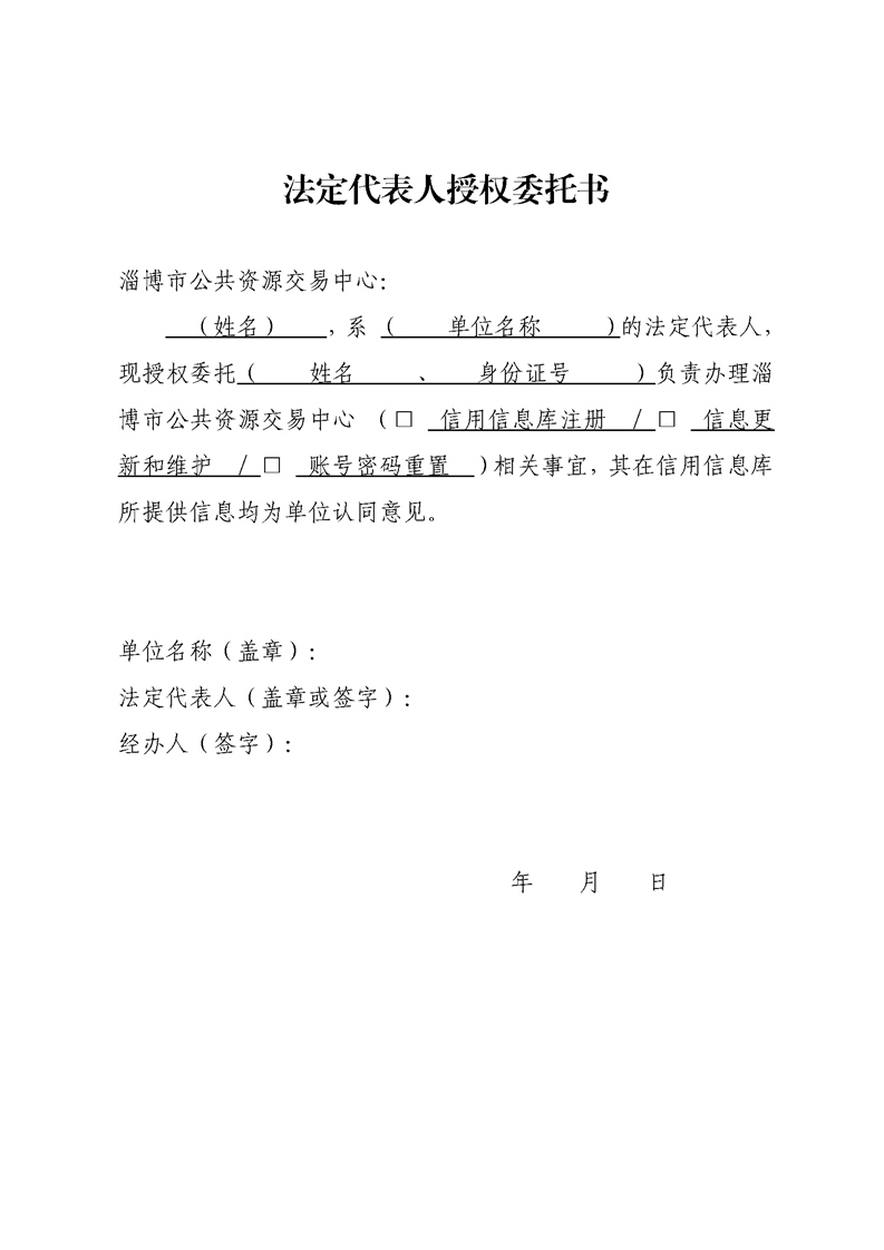 淄博市公共资源进场交易法定代表人授权委托书(投标人).doc