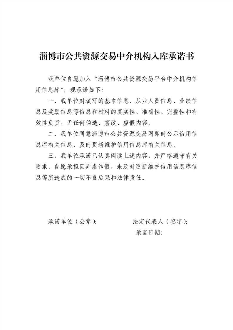 淄博市公共资源交易中介机构入库承诺书(11.20).docx
