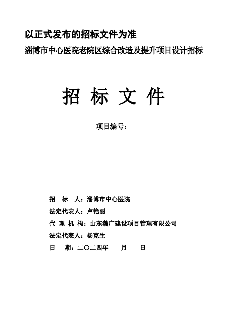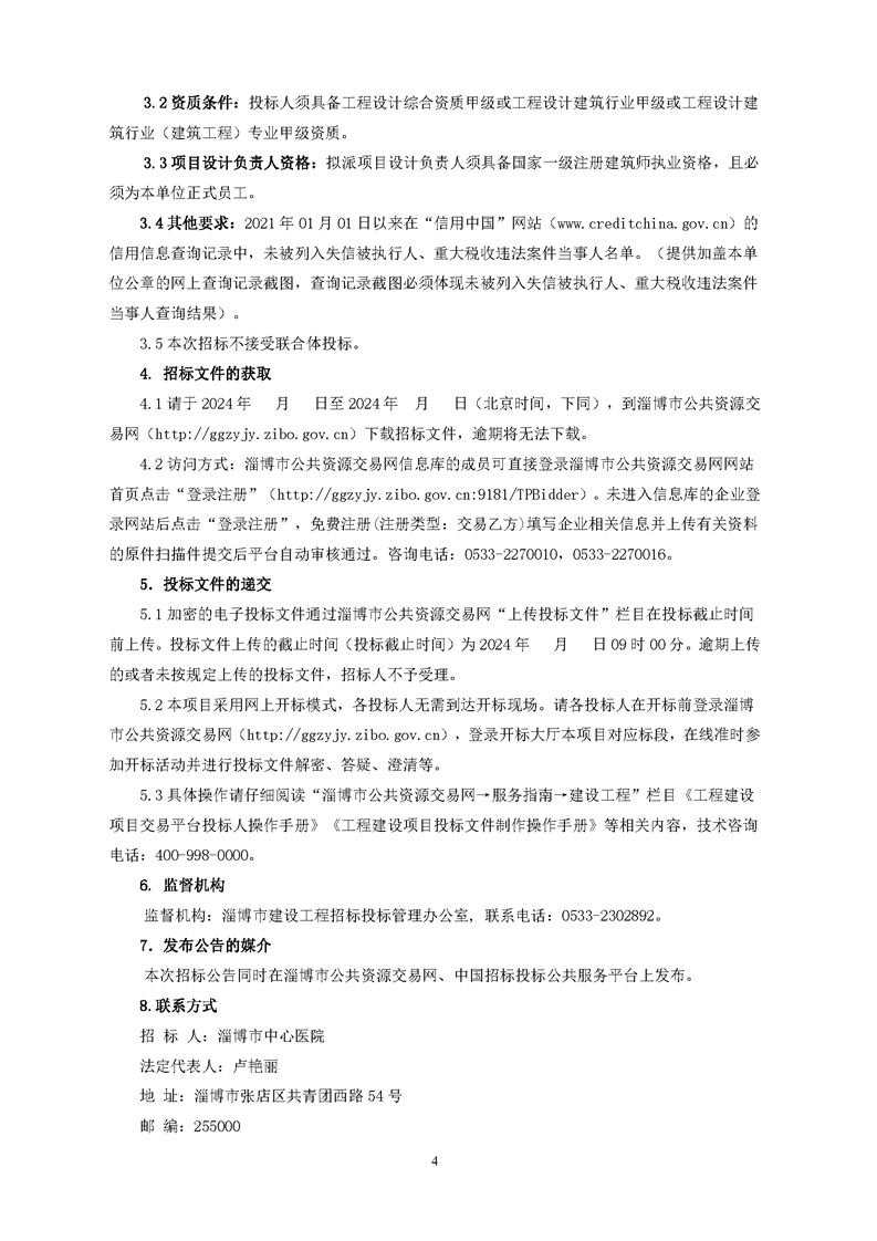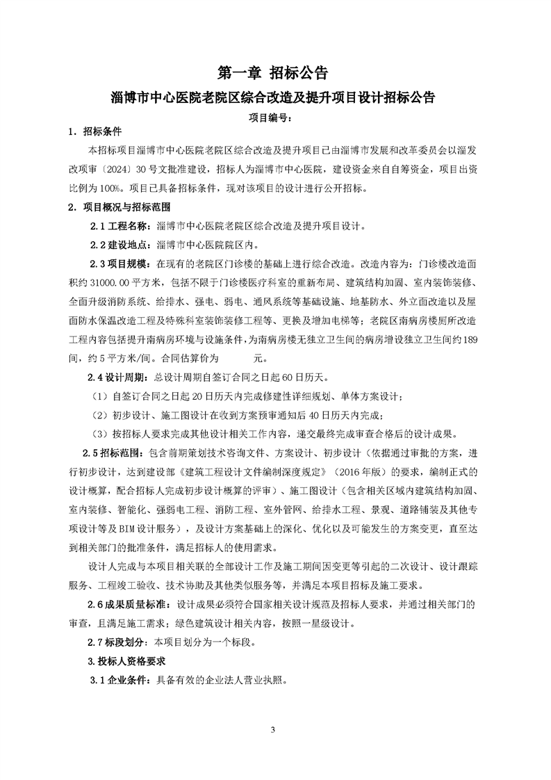 淄博市中心医院老院区综合改造及提升项目设计招标文件预公示