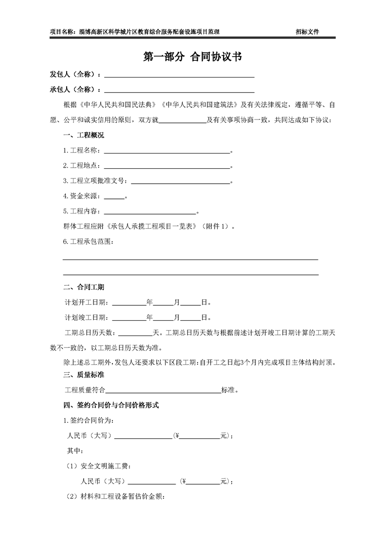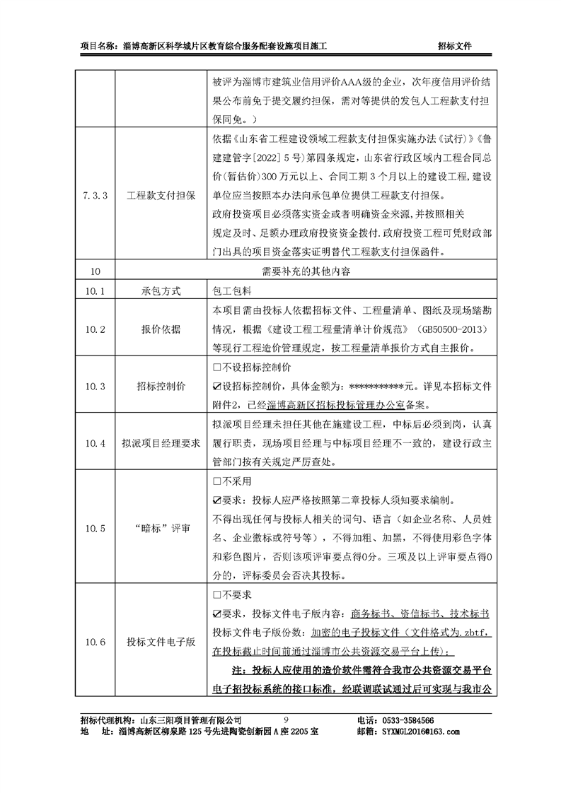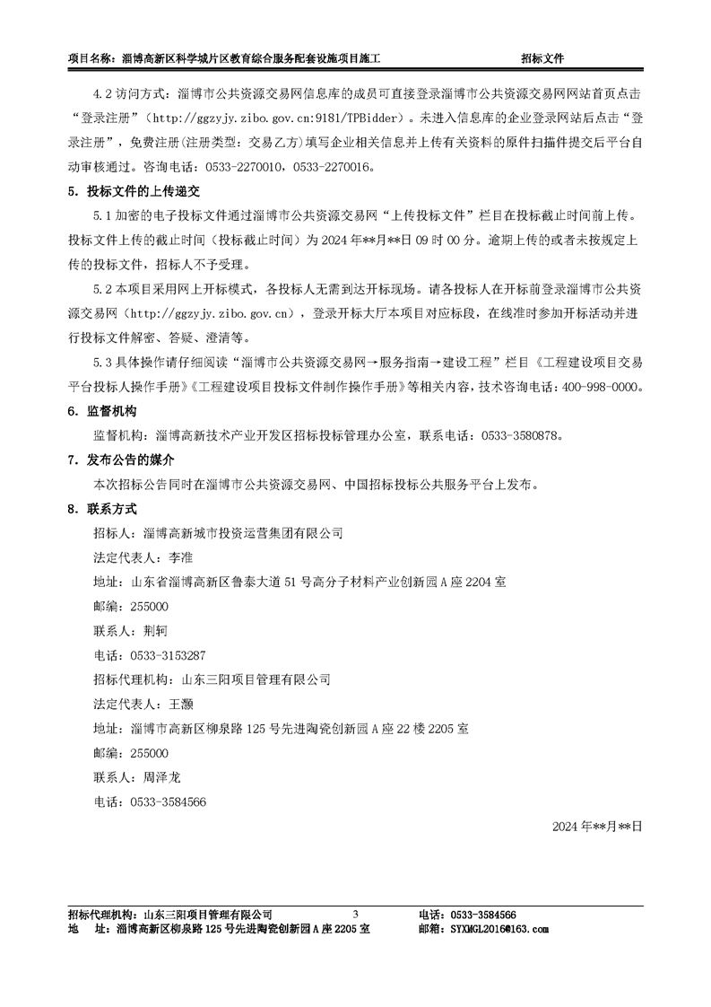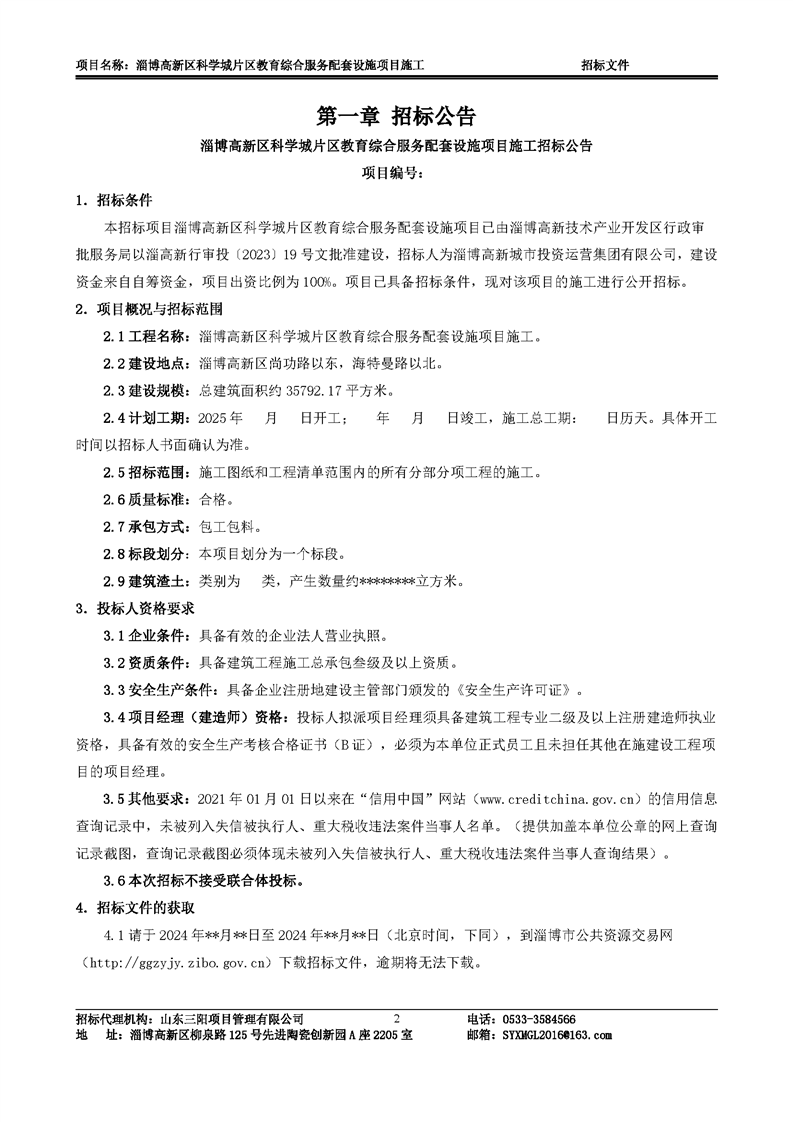 淄博高新区科学城片区教育综合服务配套设施项目施工招标文件预公示