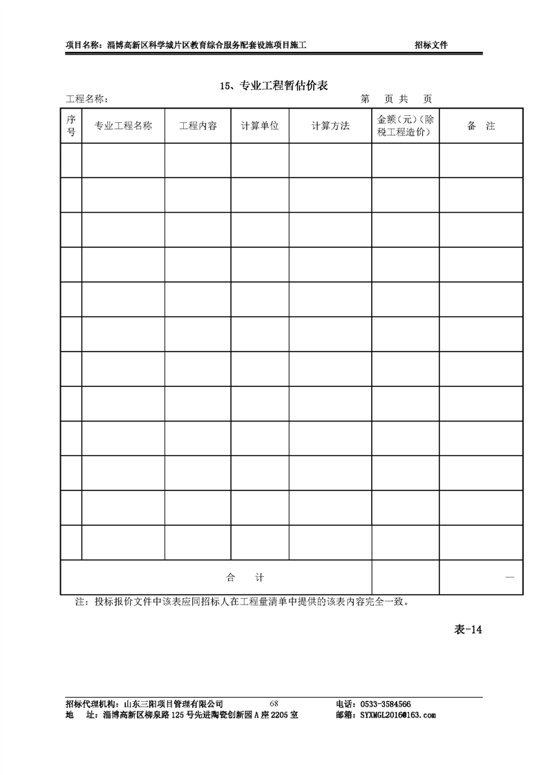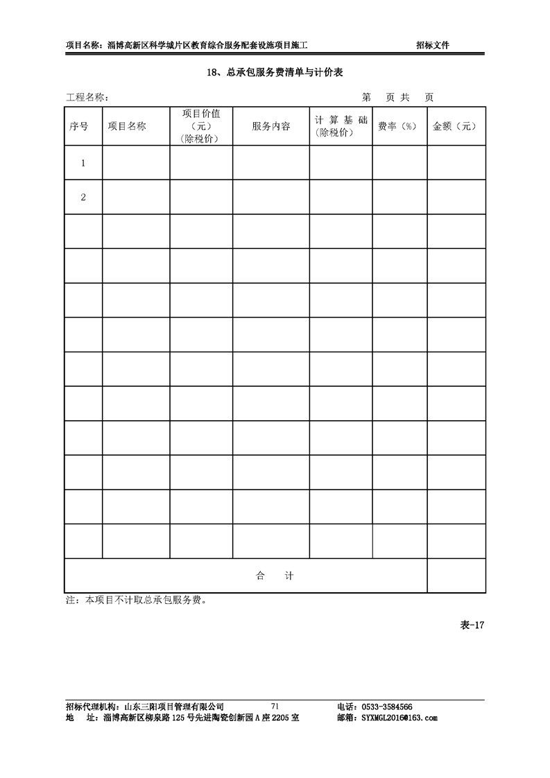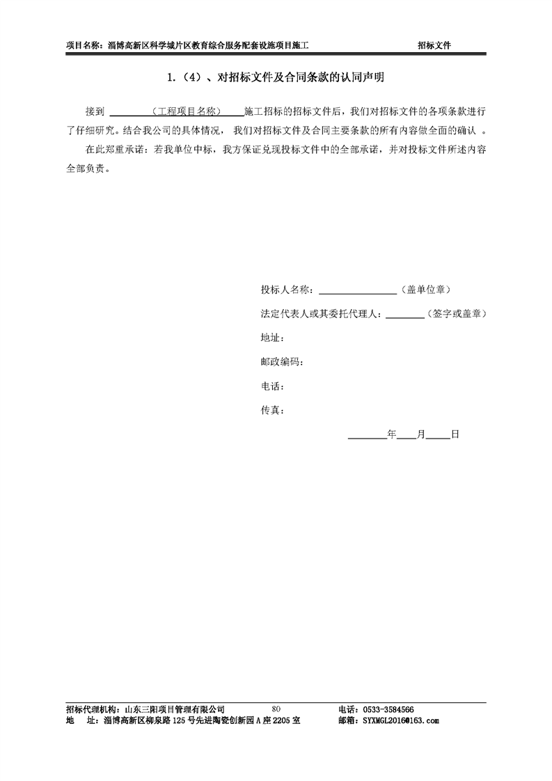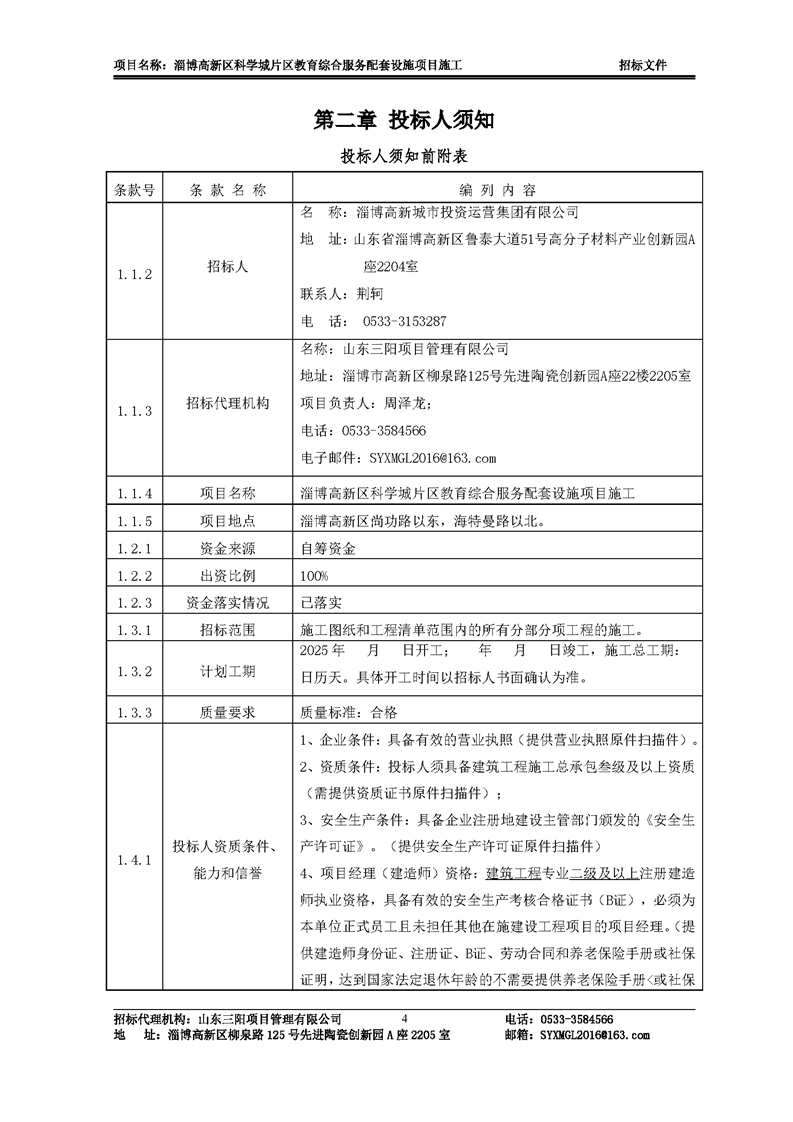 淄博高新区科学城片区教育综合服务配套设施项目施工招标文件预公示