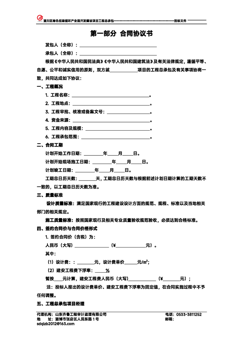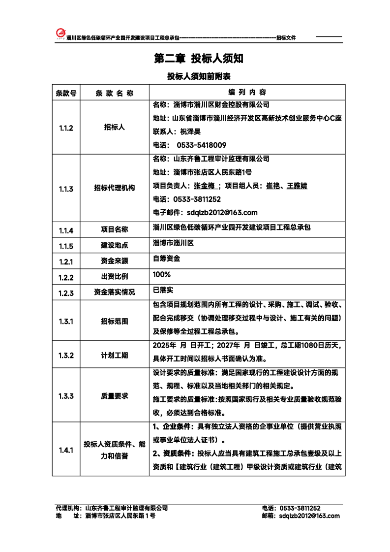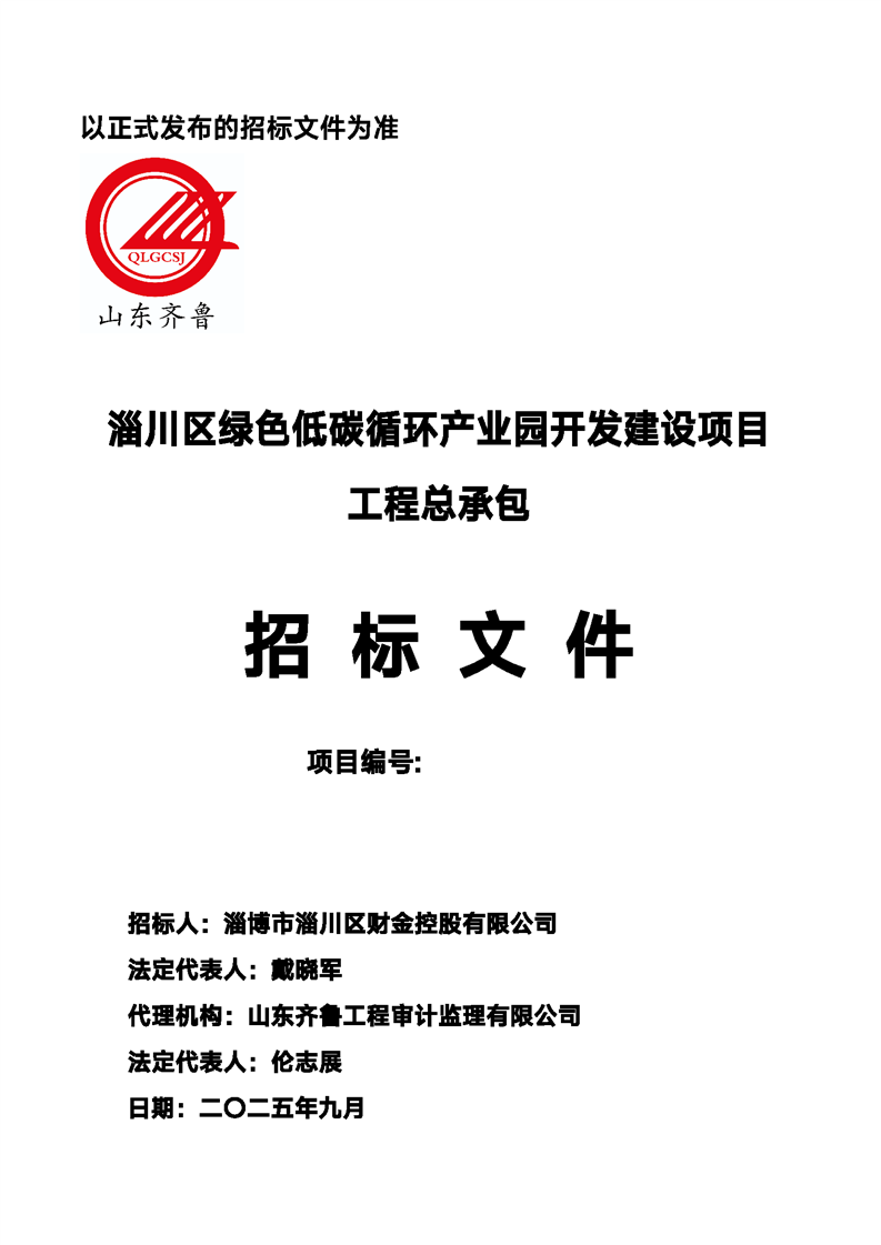 淄川区绿色低碳循环产业园开发建设项目工程总承包招标文件预公示