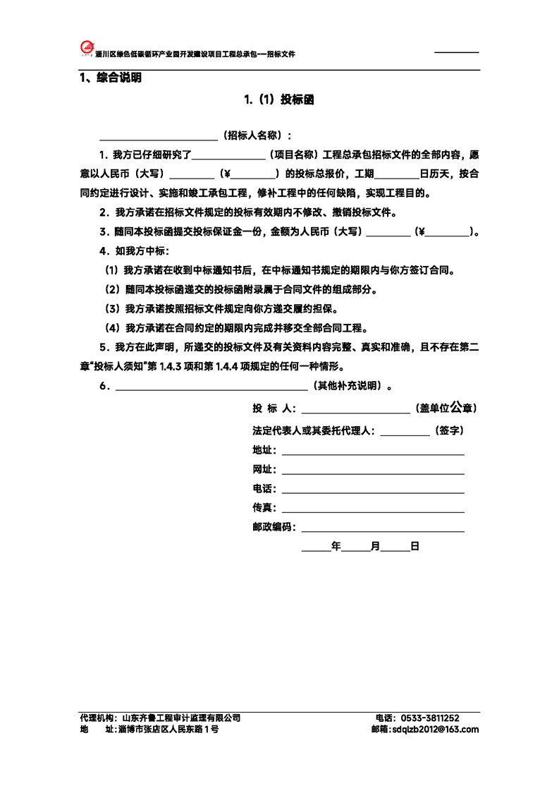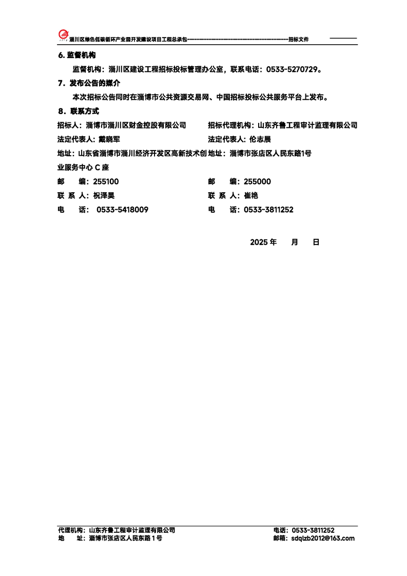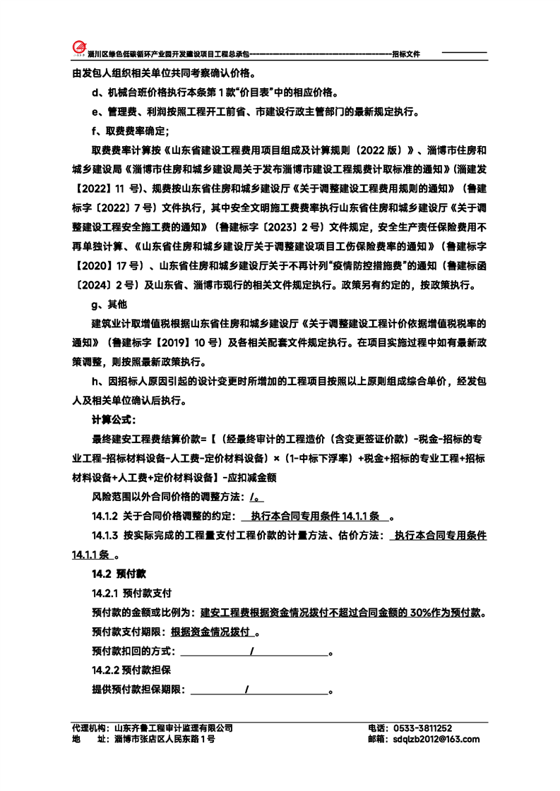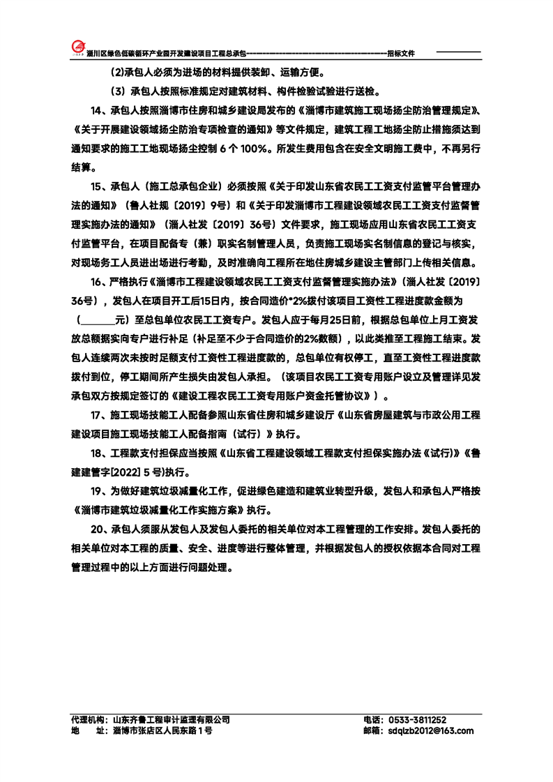 淄川区绿色低碳循环产业园开发建设项目工程总承包招标文件预公示