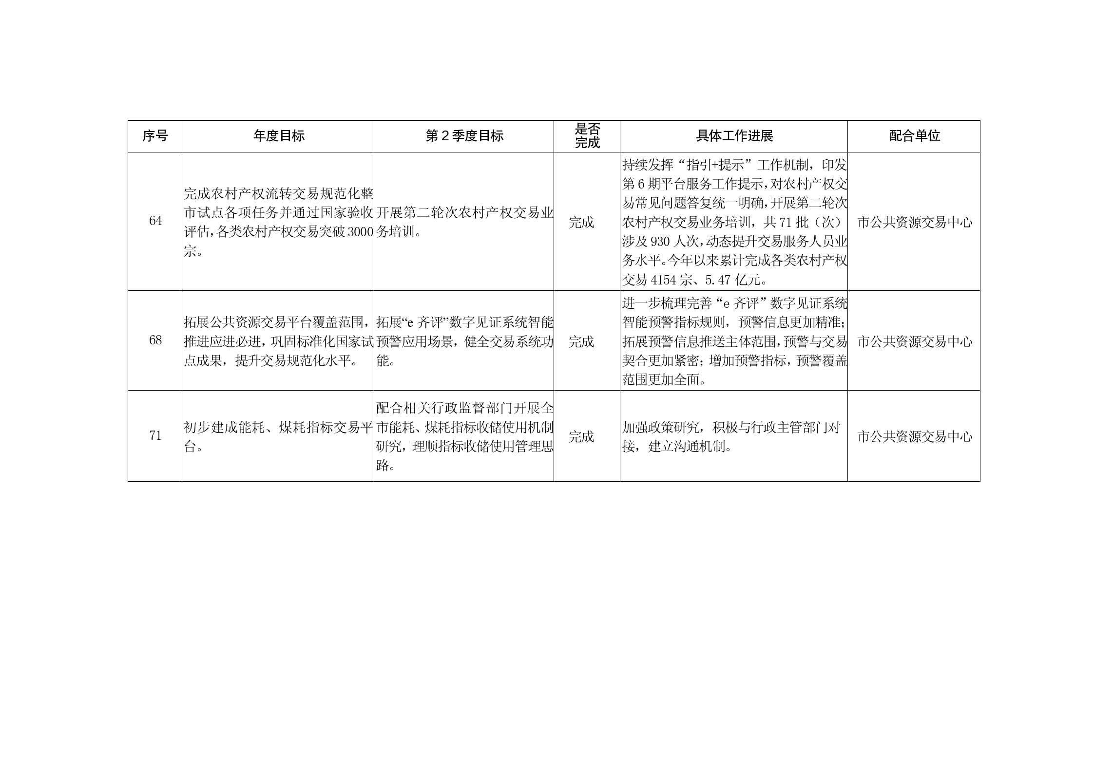 2025年全市经济社会发展第二季度目标任务涉及市公共资源交易中心配合工作完成情况